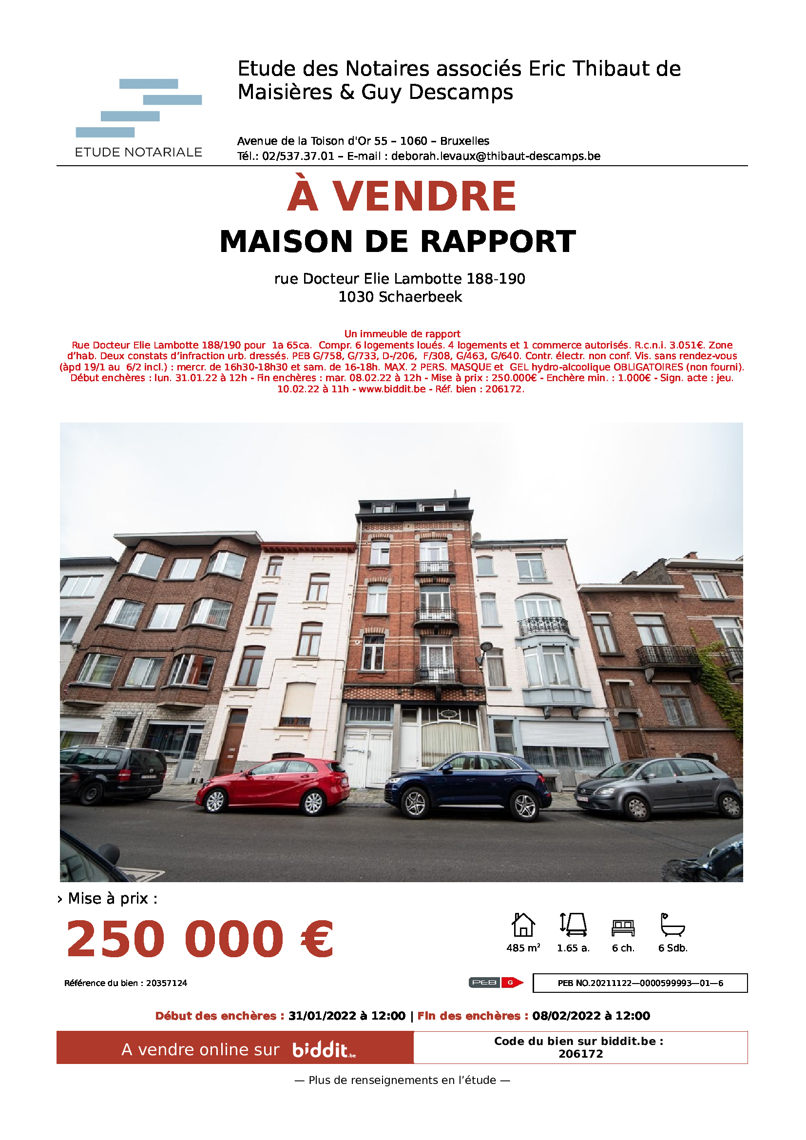- Enchères du 30/01/2022 à 12h00 jusqu'au 08/02/2022 à 12h00